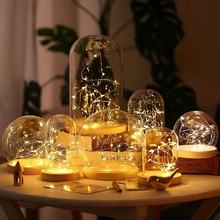 Clear Glass Display Glass Flower Display Cloche Bell Jar Bottle with Wooden Base Dust Cover Display Box Immortal Flower Box
