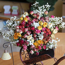 Flower Heads Dried Natural Real Mutiple Heads Rose Flower Wedding Bouquet Bubble Rose Florist Floral DIY Material Home Decor