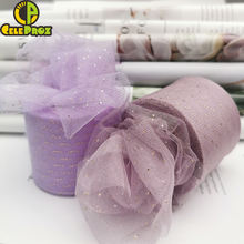6cm 25Yards Golden Dotted Tulle Ribbon Glitter Organza Mesh Fabric Film DIY Craft Accessories Hair Clip Bowknots Sewing Material