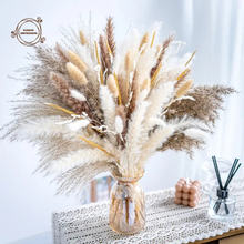 Natural Pampas Dried Flowers Bunny Tails Grass Craspedia Boho Bouquet Wedding Decor Party Supplies Vase Garden Decorations