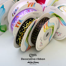 16mm 25mm Gold Foil Eid Mubarak Ramadan Mubarak Printed Satin Ribbon For Muslim Ramadan Festival Al-Fitr Party Decoration