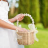 4. Classical Elegant Storage Basket: This classical basket is full of rural style, white silk ribbon bow, and pearl are tied on the handle, which is more beautiful.